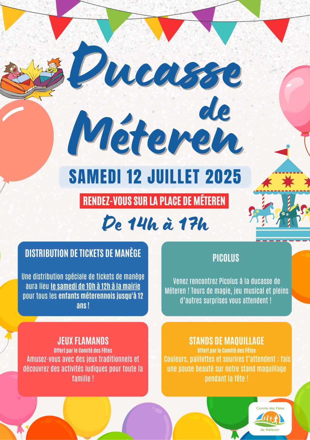 DUCASSE EN FETE 2023 🗓 🗺 Juin 10Juin 10 Admin Venez profiter de notre ducasse et des manèges des forains présents sur la pla... Read More