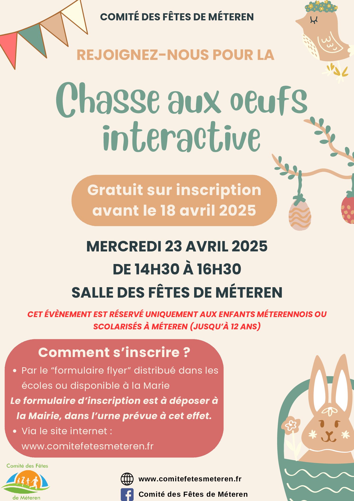 Une chasse aux œufs pas comme les autres vous attend : interactive, ludique et pleine de surprises ! Et pour bien terminer l’après-midi, un goûter sera offert aux petits chasseurs 🍪🍫